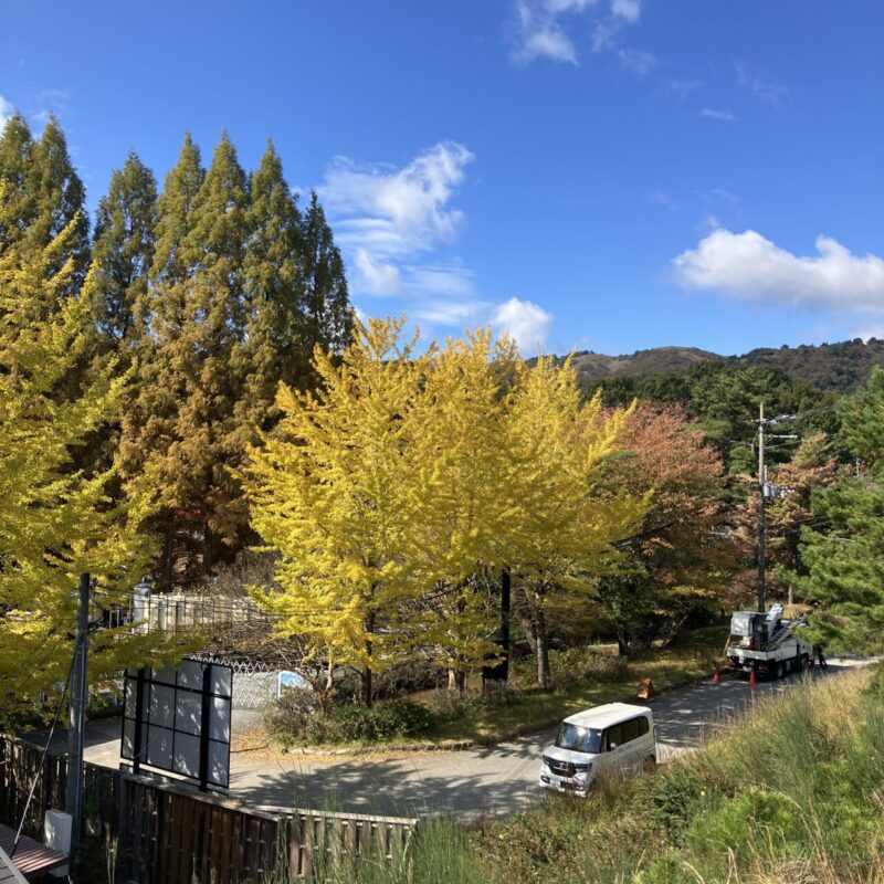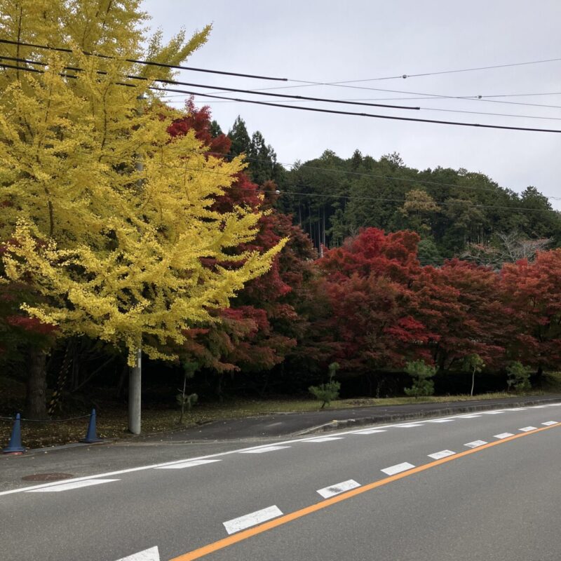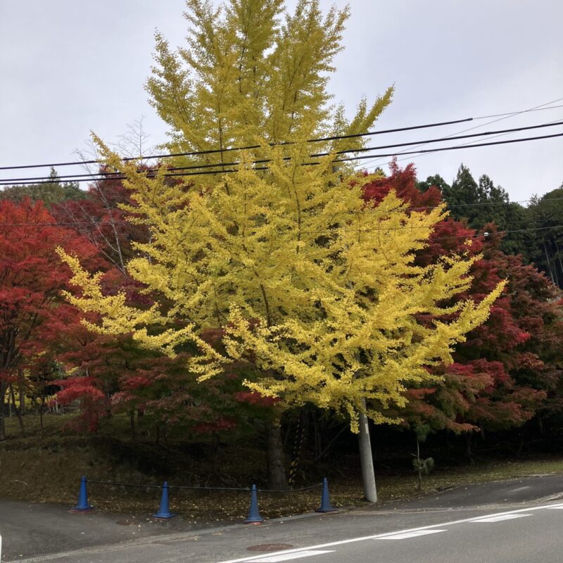 見事な黄色と赤色でこの時期はバイクを停車して休憩している姿をよく見かけます。