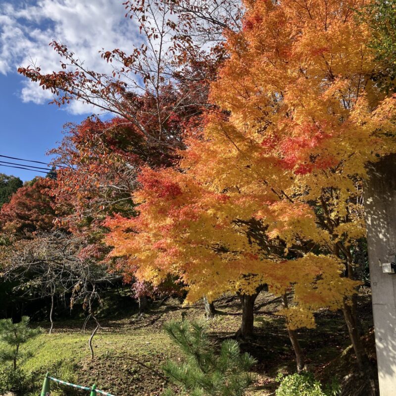 | G | 西光寺 | 八木町美里 | 11月下旬 ~12月上旬 | ・グラデーションが青空に映える華麗な紅葉 ・JR吉富駅から1㎞強の場所 |