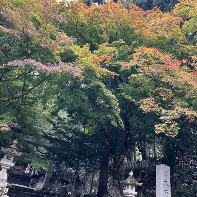 駐車場から見える紅葉が真っ先に紅葉します。参道がどのように変化していくのか楽しみです。