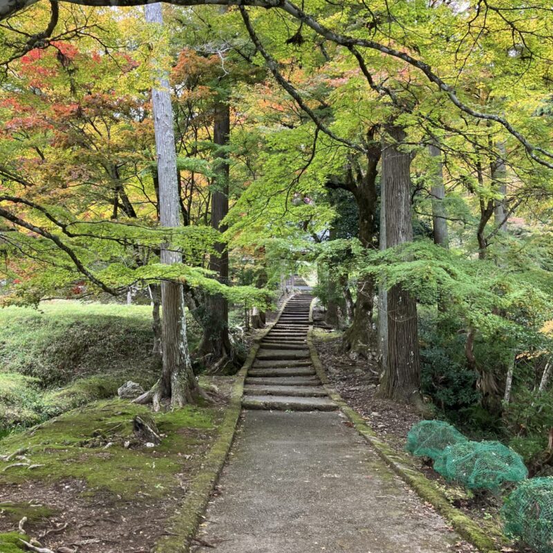 | E | 龍穏寺 | 園部町仁江 | 11月下旬 ~12月上旬 | ・石段の参道沿いに約20本のモミジ ・落葉した後も見事 |