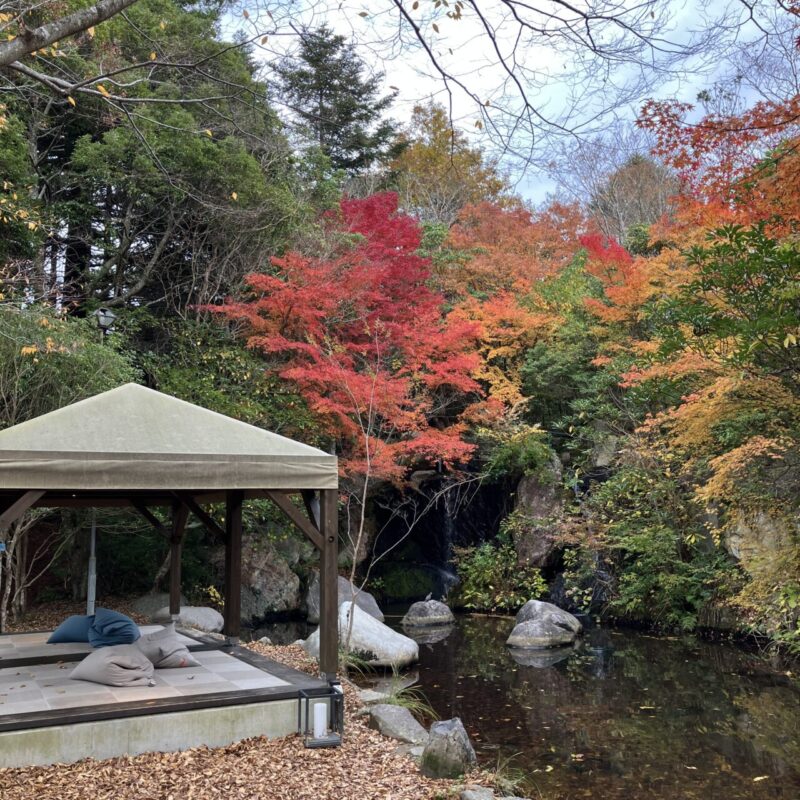 キャンプや温泉に入りながら眺める情緒が素敵です。南丹市内でも早く紅葉シーズンを迎えるエリアです。