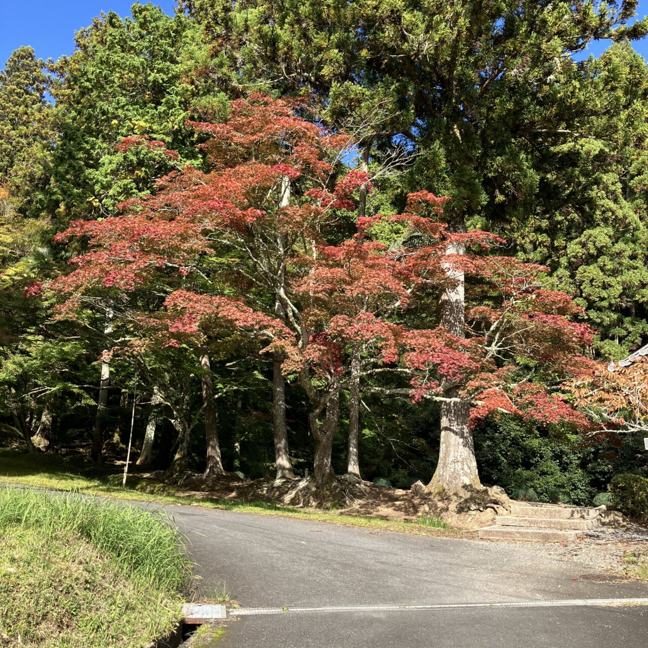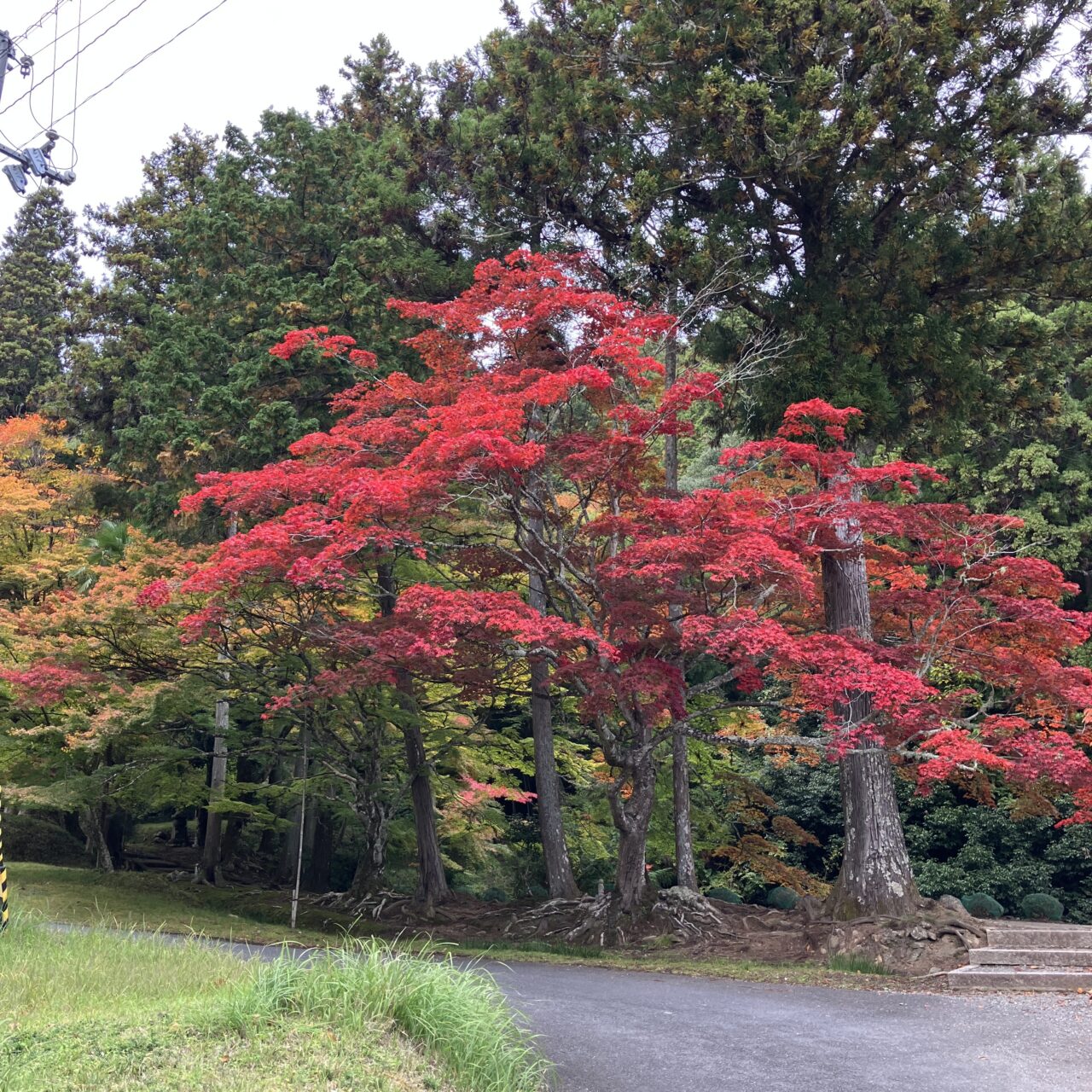 駐車場から見える紅葉が真っ先に紅葉します。参道がどのように変化していくのか楽しみです。