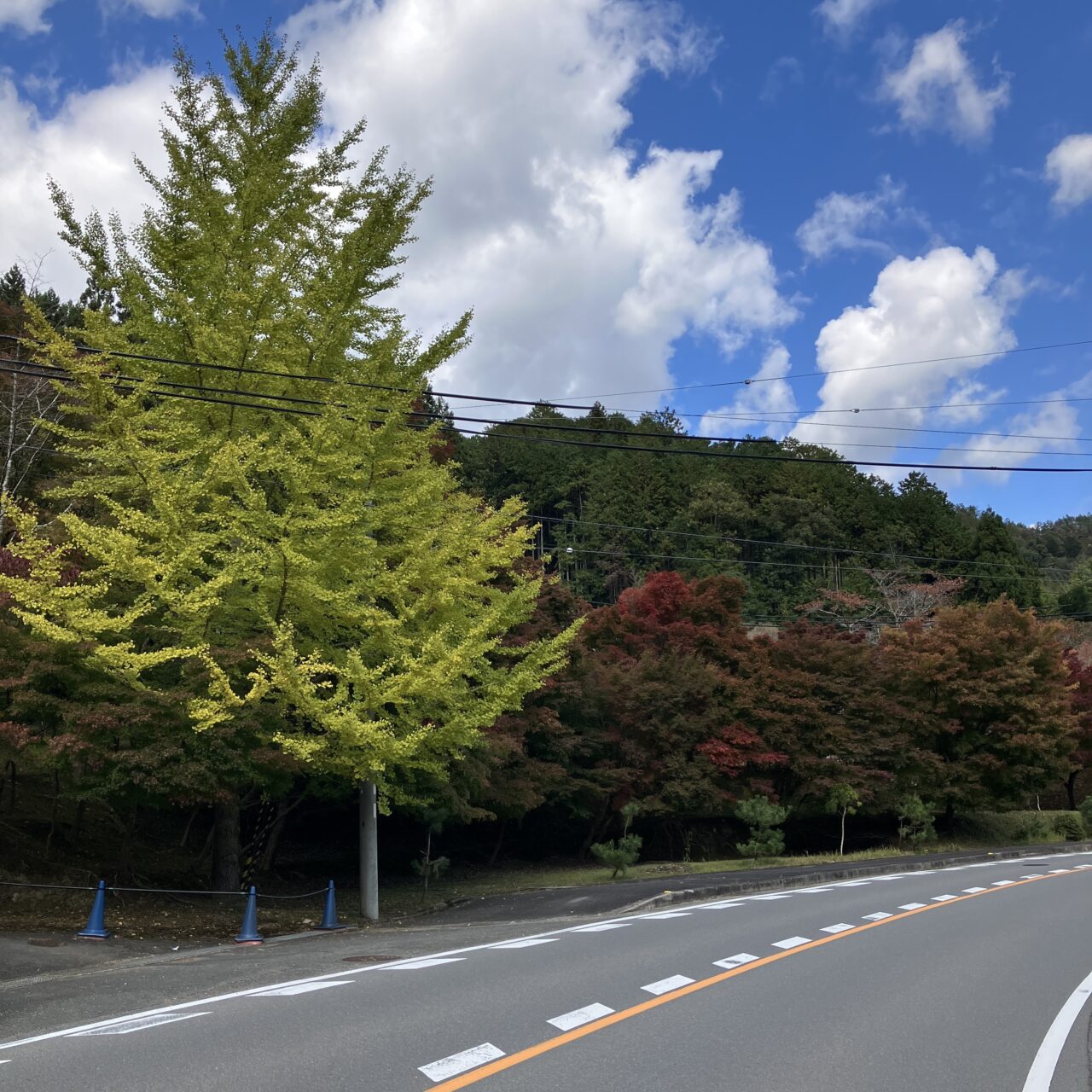 見事な黄色と赤色でこの時期はバイクを停車して休憩している姿をよく見かけます。