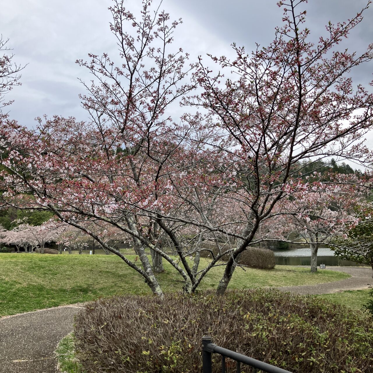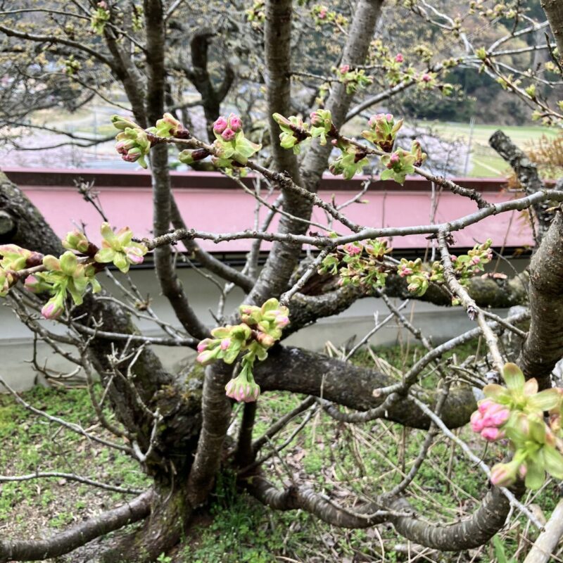 南丹市内で桜の開花場所はG:園部公園陸上競技場の一択です。昨年よりも1週間前後は早い感はあります。27日以降は気温が高い日が続きますので、来週末(4/3~4/5)は期待大です。