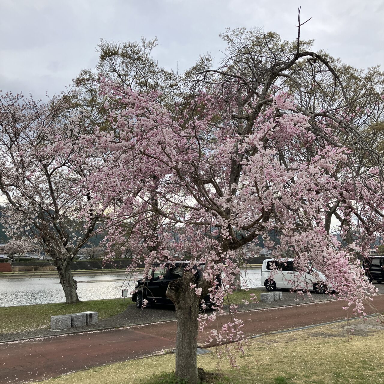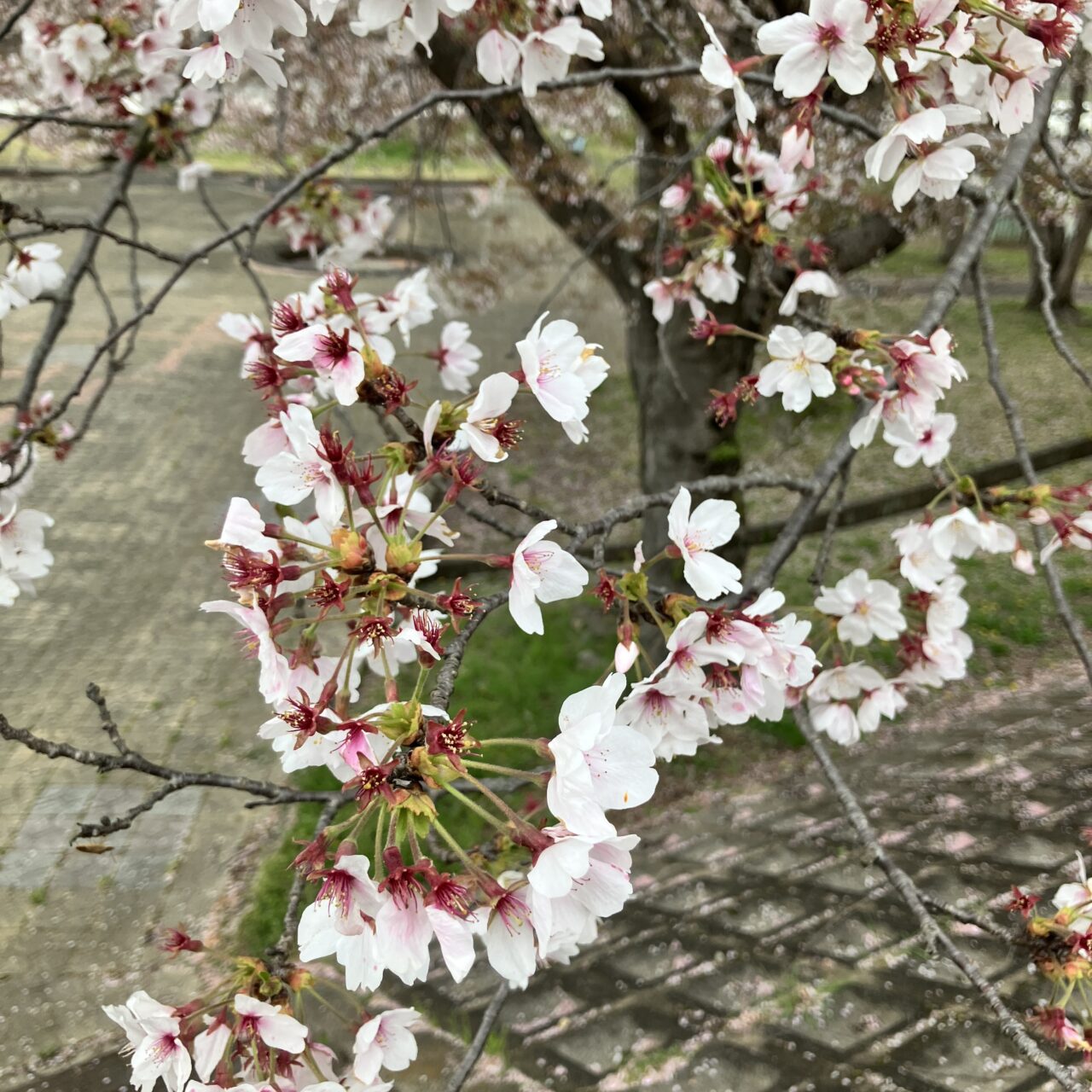 八木町の一部では、強風の影響もあり一部、散っているところもあります。例年に比べ、開花から散るまでの期間は短いかもしれません。