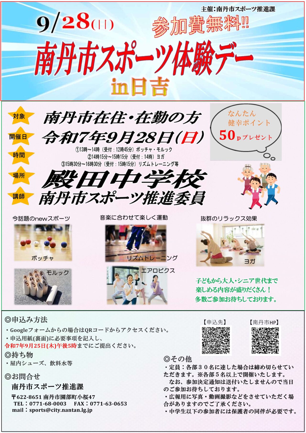 2025年9月に京都府南丹市で開催予定のイベントスケジュールのまとめです