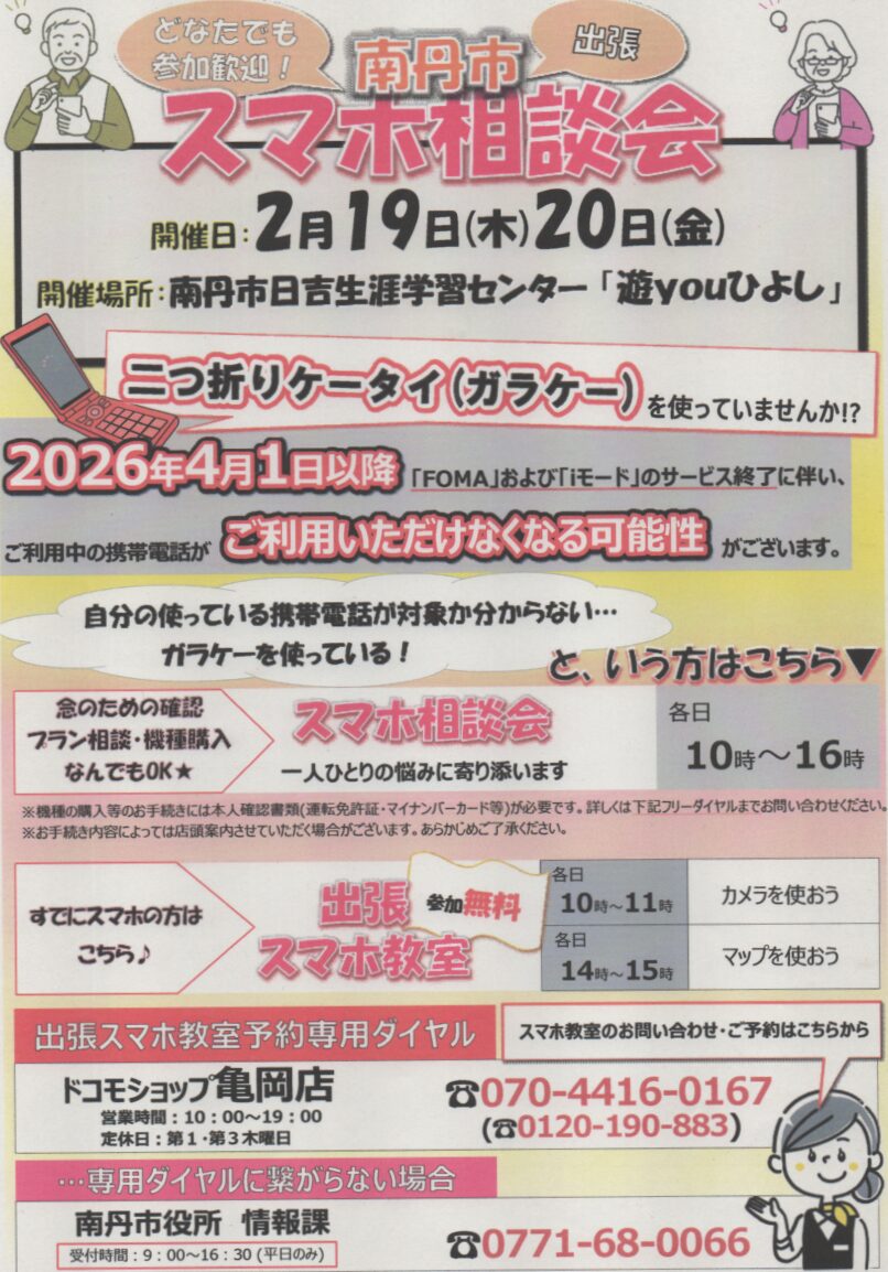| 27日(火) | 【美山町】 はじめてのスマホ講習会(電話、カメラ、交付申請他) |