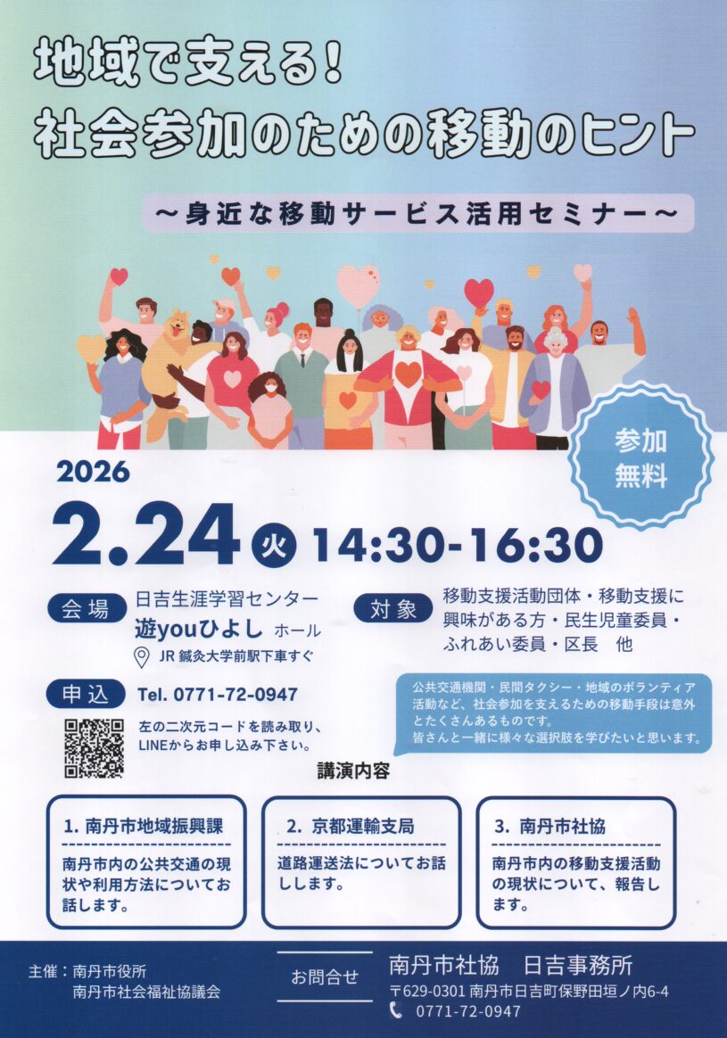 | 30日(金) | 【園部町】 はじめてのスマホ講習会(地図アプリ、LINE、交付申請他) 高次脳機能障害と私 ~私の身体が体験したことと現在に至るまで~ |