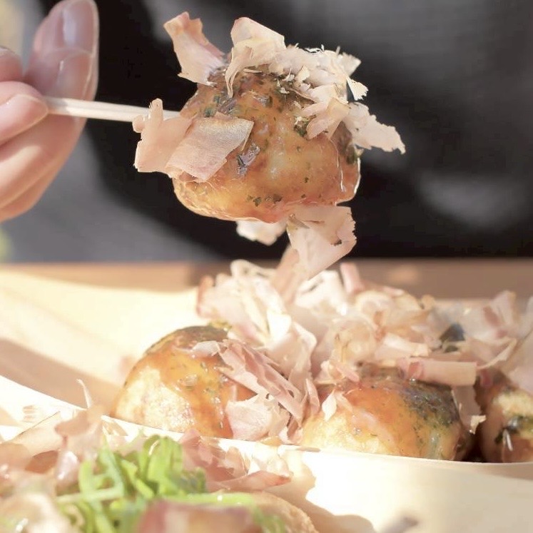 上ノ山商店]グルテンフリー米粉のたこ焼きのお店です。小麦粉は一切使わず、米粉はもちろん添加物等を極力控えた食材を厳選。ソースは複数からチョイス可。
