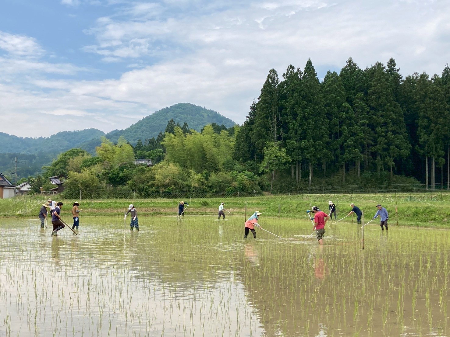 5月~9月までの間に園部町の田んぼで稲作体験や自然観察などの授業を計3回行います。